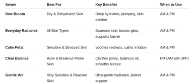Whether you’re dealing with dryness, sensitivity, breakouts, or simply want a daily glow boost, this guide will help you find the perfect serum for your skin.